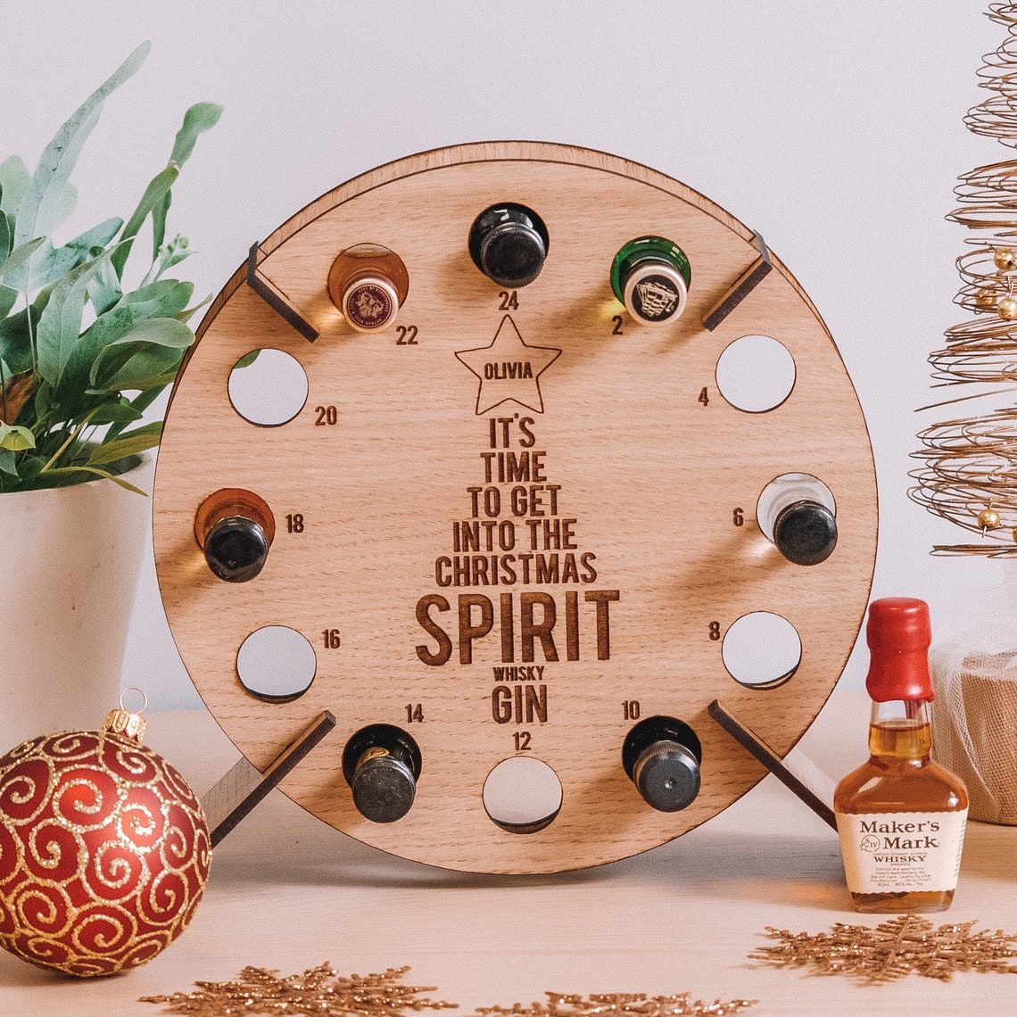 🎄CHRISTMAS Wooden Mini Tree Alcohol Advent Calendar holder