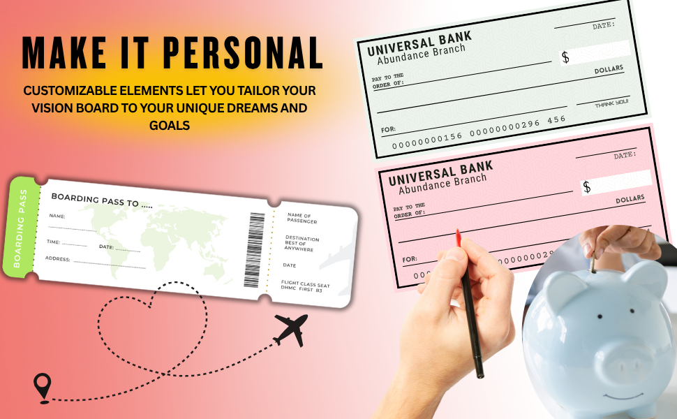 - Power Words like SUCCESS, ABUNDANCE, DREAM BIG, FINANCIAL FREEDOM.