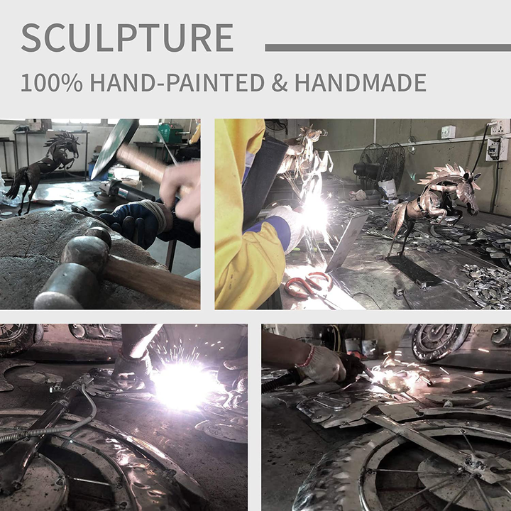 - Metal material- these metal horse statues are all handmade. Each piece involves complicated craftsmanship, cutting, modeling, welding, aging treatment, anti-rust treatment, coloring, frosted surface treatment, etc. These are just some of the measures we have taken Make sure you have the coolest artwork. Each statue is unique! No sculpture is like another, you can be sure that what you are buying is a real craft.