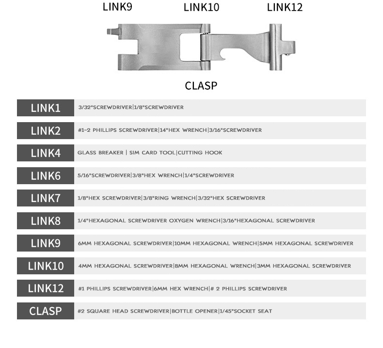 - 【Multi-function】: All kinds of socket wrenches, hexagonal wrenches, hexagonal screwdrivers, flat-blade screwdrivers and Phillips screwdrivers, oxygen cylinder wrenches, cemented carbide glass breakers, SIM card picks, cutting hooks, socket drive adapters and bottle openers .
