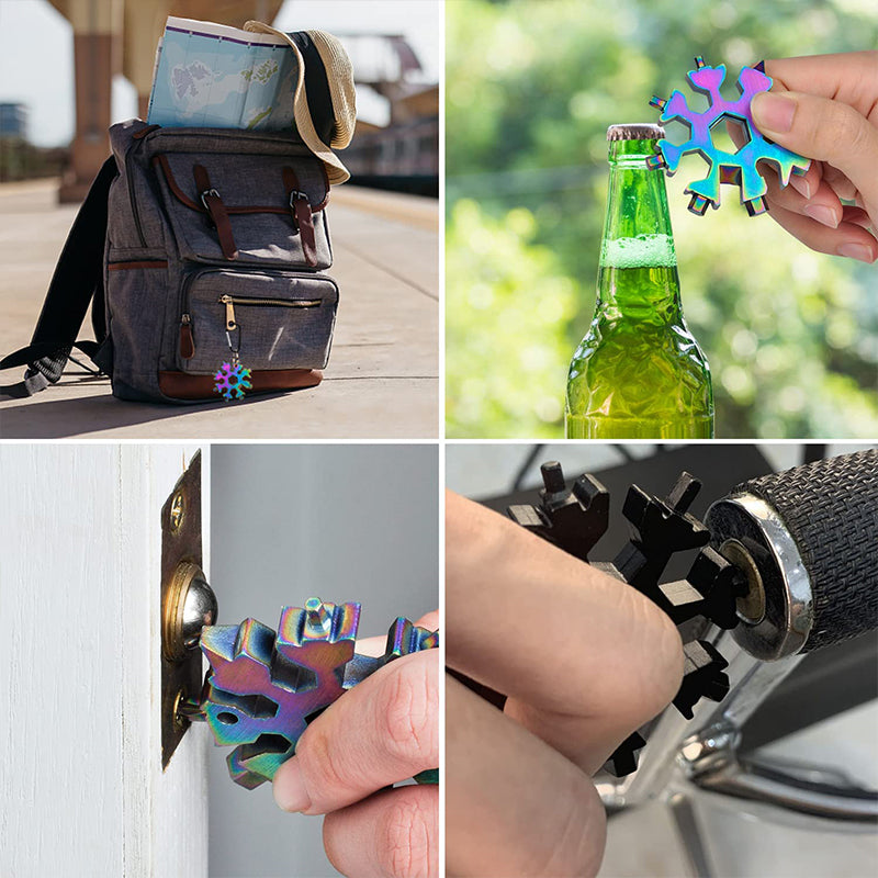 18-in-1 Snowflake Multi-Tool, Stainless Steel Multitool Standard. Our 18-in-1 Stainless Multi-tool, can be used under several conditions. It is not only a simple tool with the special snowflake-shaped design, you can explore its special usages by your imagination, we believe it can bring you many surprise.